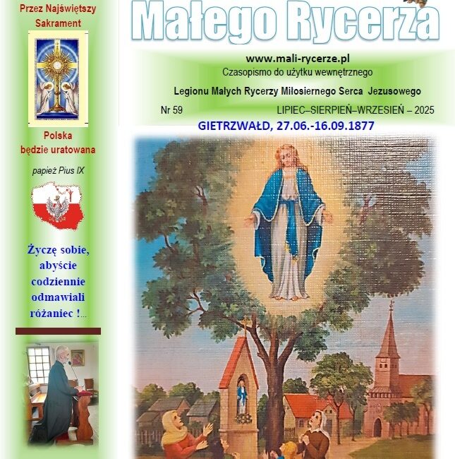 FOTO-RELACJA Z REKOLEKCJI w Gietrzwałdzie, 23-25.07.2025 Po ponad 15 latach mogliśmy ponownie skorzystać jako Legion MRMSJ z miejsca, w którym króluje od blisko 150 lat Matka Boża Patronka Warmii i Mazur – która od 27 czerwca do 16 września 1877 r. objawiła się w tym miejscu 160 razy. TEMAT WIODĄCY REKOLEKCJI:...