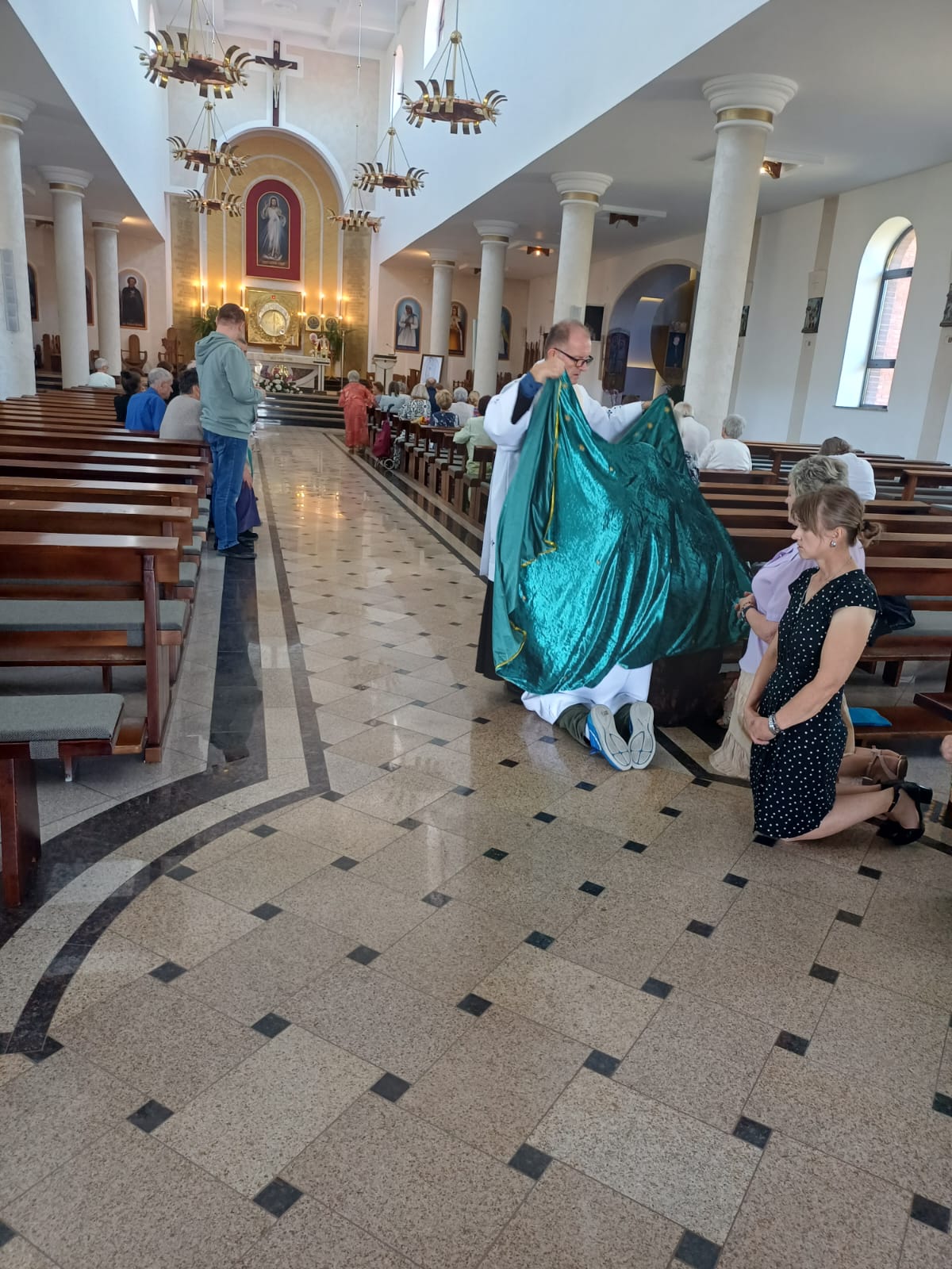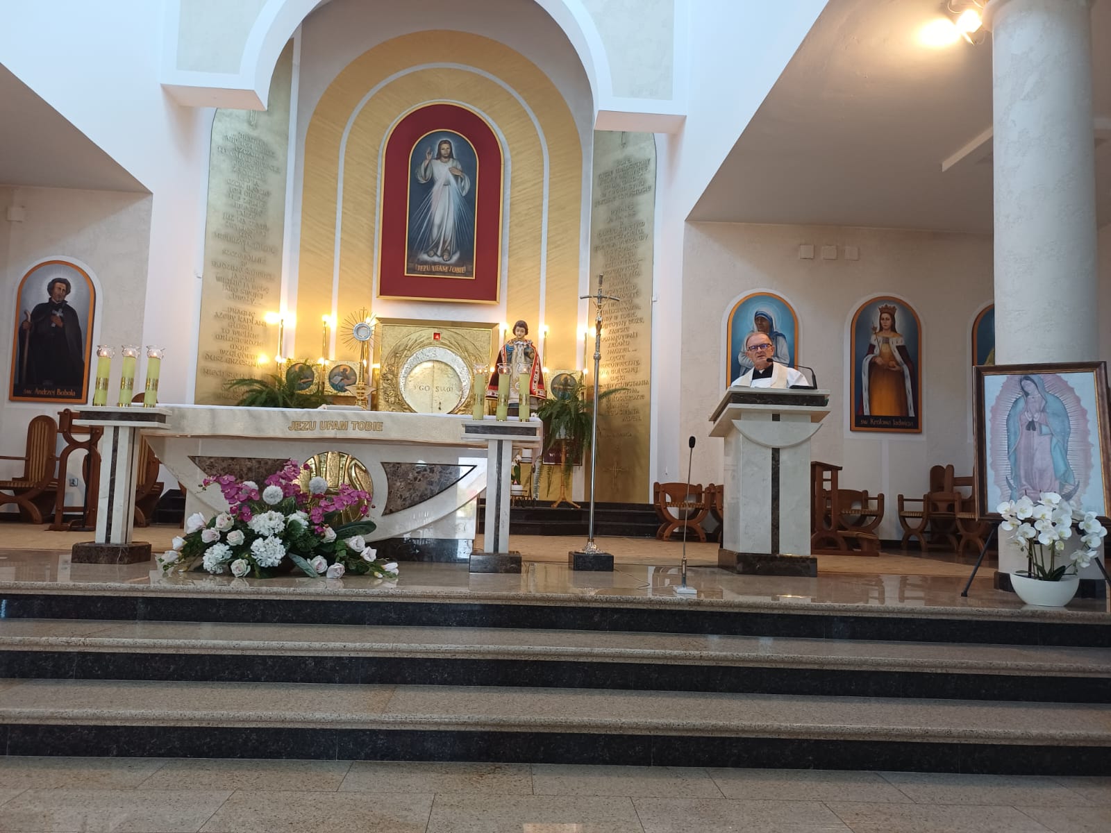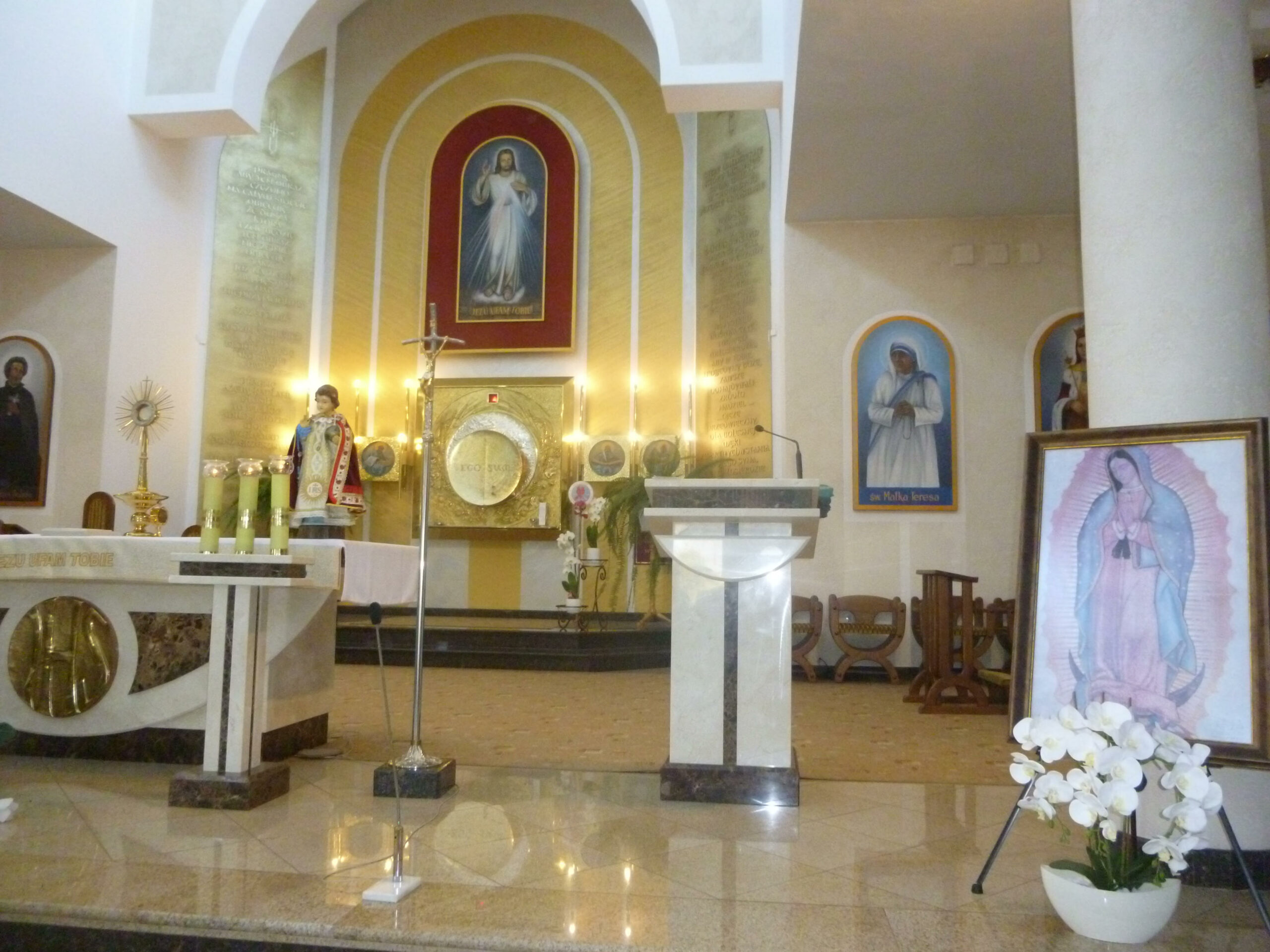 Na ołtarzu stanęło Dzieciątko Praskie, które peregrynuje w naszej wspólnocie, a obok obraz Matki Bożej z Guadalupe przywieziony przez Księdza Lesława i nasz znak Małych Rycerzy Miłosiernego Serca Jezusowego.