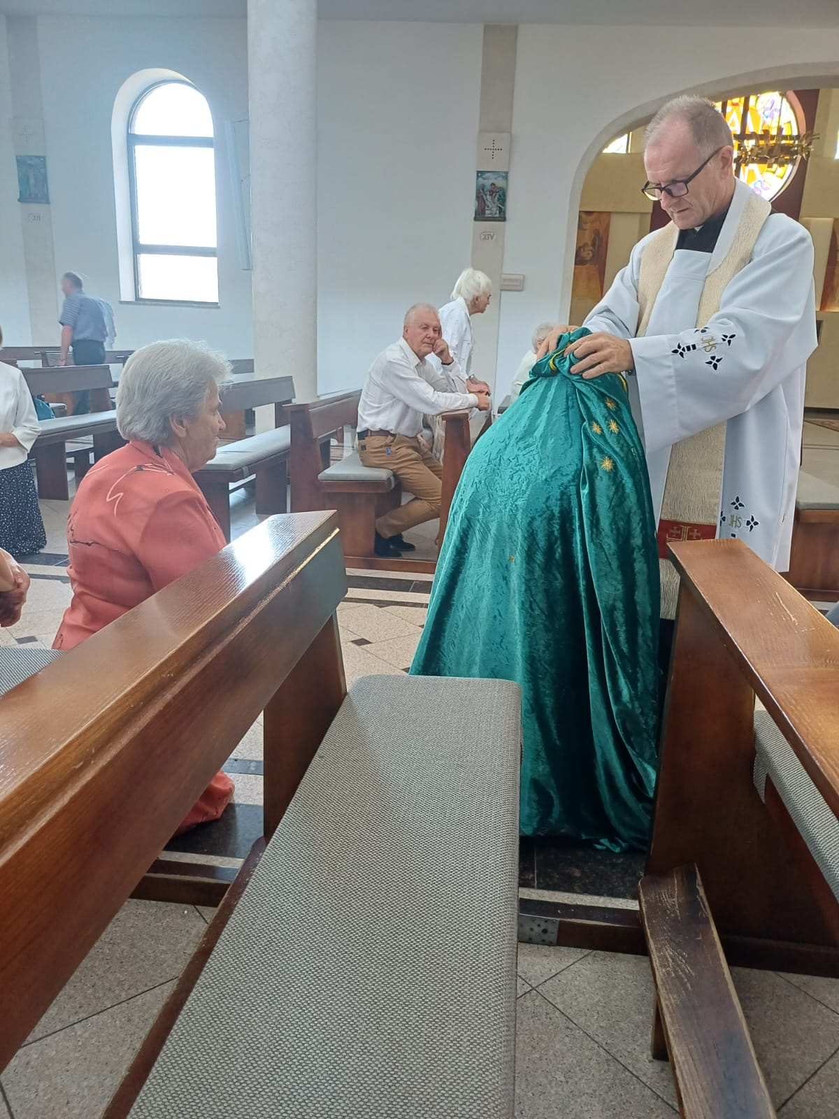 Później podczas odmawiania przez nas koronki do Płomienia Miłości Niepokalanego Serca Maryi Ksiądz okrywał nas płaszczem Matki Bożej z Guadalupe, modląc się indywidualnie nad każdą osobą.