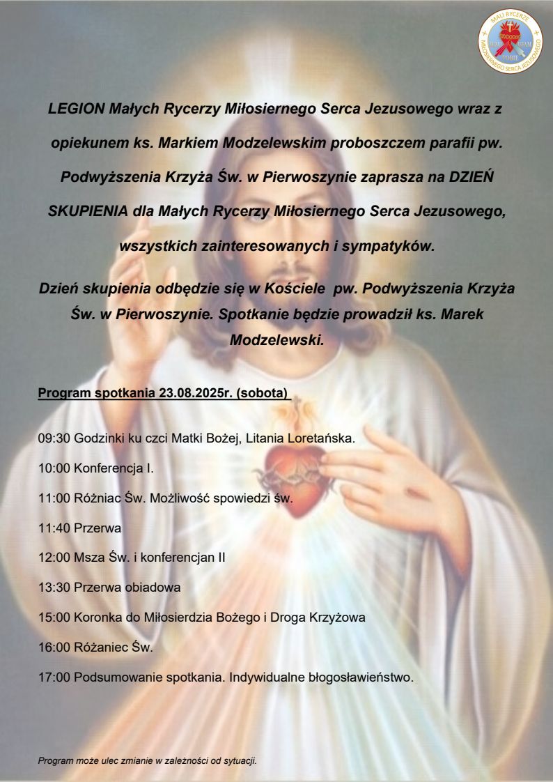 Dnia 23 sierpnia 2025 odbył się Dzień Skupienia zorganizowany dla Małych Rycerzy Miłosiernego Serca Jezusowego oraz grona sympatyków z regionu wybrzeża gdańskiego, a nawet z ośrodka Nowego Sącza.
